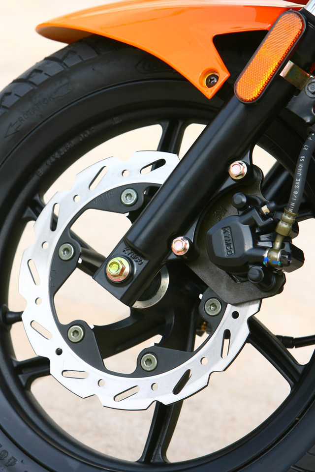 Телескопическая вилка диаметром 33мм, два амортизатора, регулируемые в пяти позициях. Тормоза – дисковые диаметром 260мм спереди и 240мм сзади.