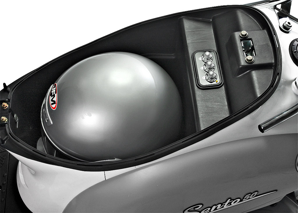 Двигатель Sento 50 соответствует только нормам Евро-2. Второй предлагаемый цвет помимо голубого – серый.