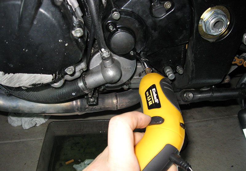 сопротивления. Откручиваем гаечным ключом оба сливных штуцера, потом