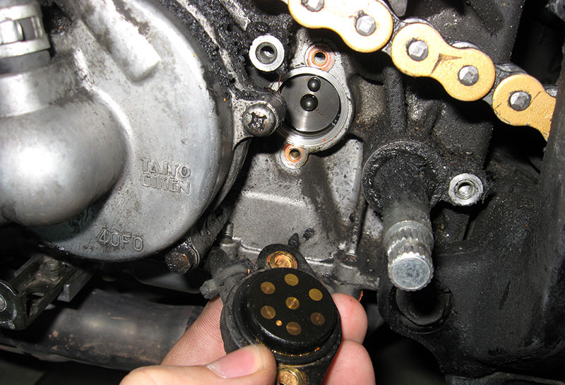 распределительных валах, становимся слева от мотоцикла и наблюдаем