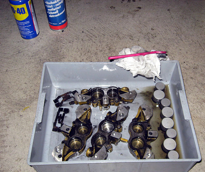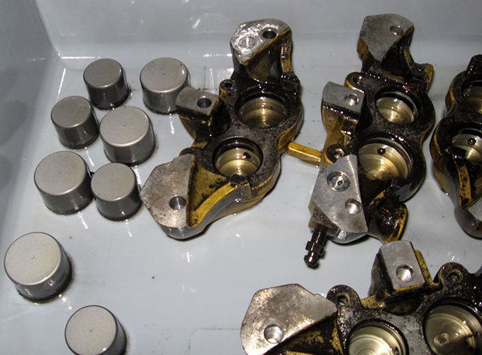 глубоко в супортах, затем пыльники (наружные уплотнители, которые
