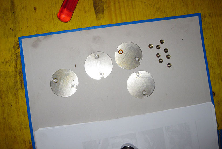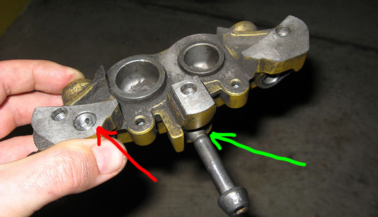 наклеены две алюминиевые шайбы. Теперь тормозной рычаг полностью