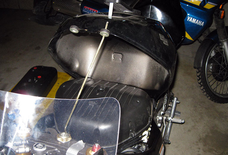 отличие - теперь вешаем сливную банку на руль, чтобы свободный конец