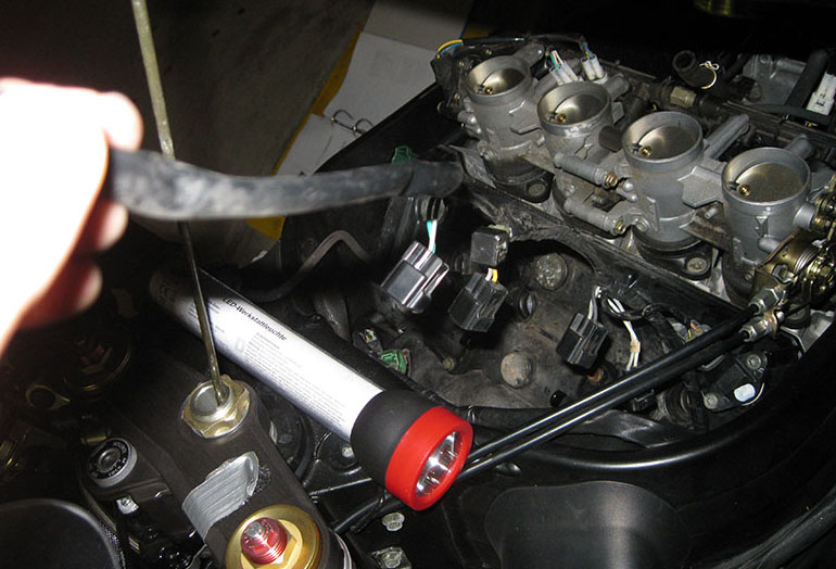 а именно - снять клапанную крышку, которая находится под бензобаком