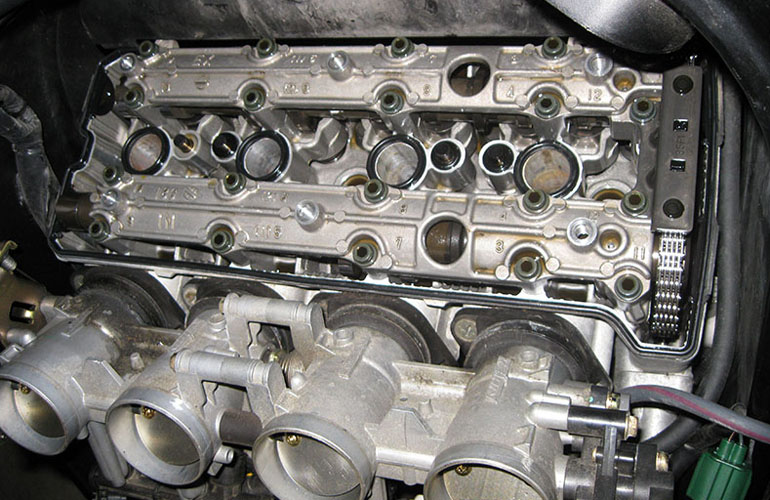 наблюдаем клапана, распределительные валы и прочее. Все должно быть