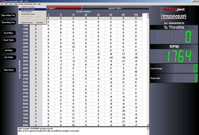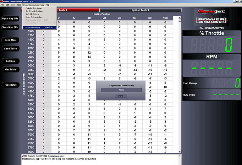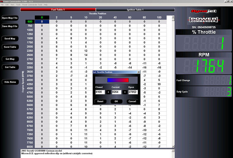 заливанию в Power Commander нужной карты топлива. В меню File->Open…,