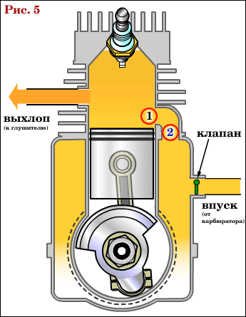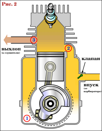 стороны впускного коллектора. Свежая смесь, выталкиваемая из кривошипной