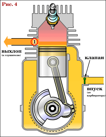 четырёхтактном двигателе. Однако, при движении поршня вниз, примерно за