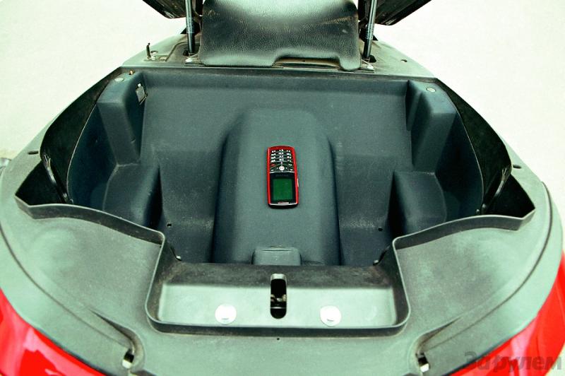 Еще пару слов о «воздухе». Увидишь «дутый» кузов – тянет заглянуть под сиденье, в необъятный «чулан», способный, по инструкции, вместить два интегральных шлема. (Откуда взялась эта единица измерения – определять вместительность багажных полостей шлемами?) Действительно, пара шлемов помещается под седло, но только на них объем и рассчитан: огромный багажник разделен ровно пополам, и получается не одна суперкладовка, а две, в каждую из которых не втиснешь даже рюкзачок с ноутбуком.