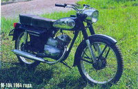 * М104 (1964—1967 гг.) — двухместный мотоцикл с маятниковой подвеской заднего колеса и телескопической передней вилкой. Количество передач — 3, мощность двигателя — 5,5 л.с.