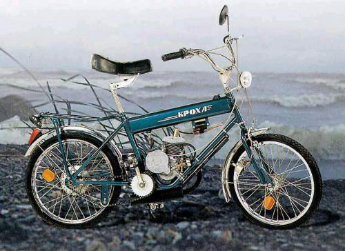 Вот такой оригинальный на вид мопед предлагает нам Минский мото-вело завод. Двигатель все тот же аналог хондовского, но со стартером снизу...
