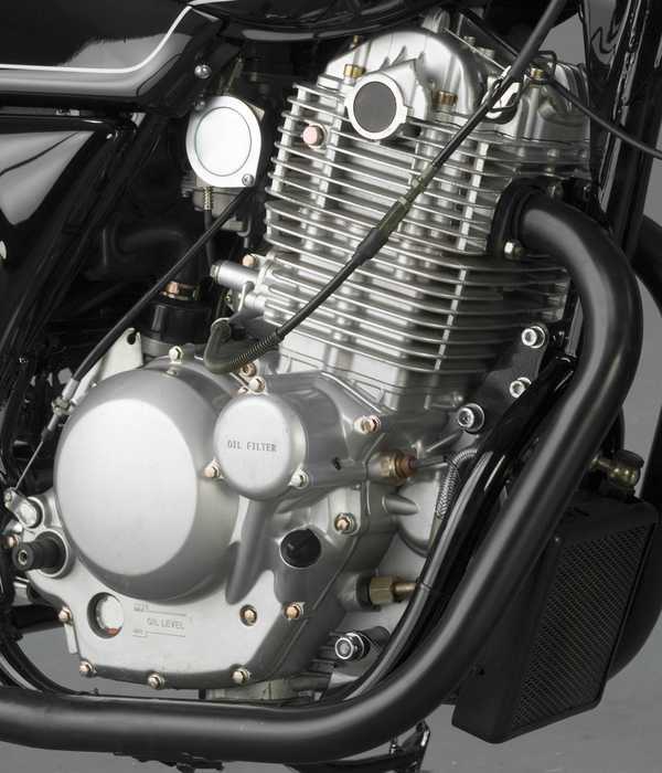Сцепление в масляной ванне, 5-скоростная коробка передач, цифровое зажигание, электростартер. Питание осуществляется через карбюратор Mikuni, мотоцикл может ездить на любом бензине начиная с АИ-92.