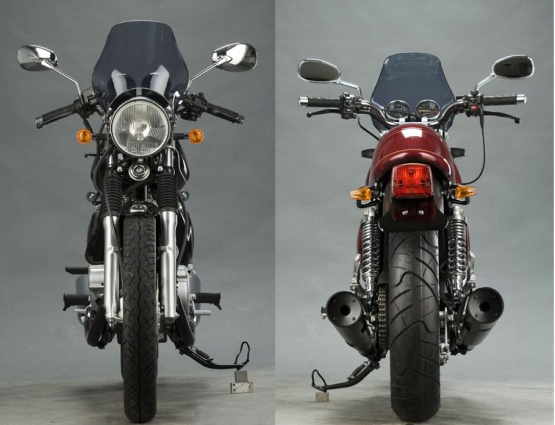 Модель планируется сразу в двух версиях - классической, на 18"спицованных колесах и неоклассической (городской) - на 16/17" литых.Источник: http://moto.meta.ua/