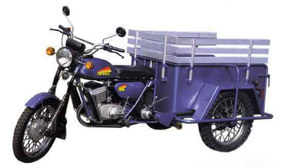Двигатель двухтактный,одноцилиндровый Рабочий объем двигателя, см3 125 Мощность двигателя, кВт (л.с) 7,36 (10) Число передач 4 Система охлаждения воздушная, принудительная Топливо бензин А76 Главная передача цепная, с промежуточным редуктором, блокируемым дифференциалом и задним ходом Средний эксплуатационный расход топлива с одним водителем при скорости 60 км/ч, л/100 км, не более 3,3 Передняя вилка телескопическая, с гидравлическими амортизаторами, ход 130 мм Тормоза барабанные, с механическим приводом, диаметр 150 мм Ножной тормоз на все три колеса Ручной тормоз на переднее колесо Стояночный тормоз на задние колеса Шины 3.00-18 или 3.00/80-18 Масса снаряженного транспортного средства, кг, не более 250 Масса перевозимого груза, кг, не более 250 Габаритные размеры, мм, не более длина 2700 ширина 1300 высотаа 1200