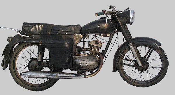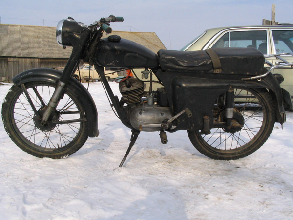 Вначале это был одноместный мотоцикл с неподрессоренным задним колесом и пружинной телескопической передней вилкой. На двигателе устанавливался простейший карбюратор К-30 с диаметром диффузора всего лишь 16 мм, и простого сетчатого воздухофильтра диаметром всего 70 мм состоящего из набора штампованных сеточек завальцованых в металлический корпус, который был снабжен заслонкой, при закрытии которой уменьшалось поступление воздуха, обогащалась горючая смесь.