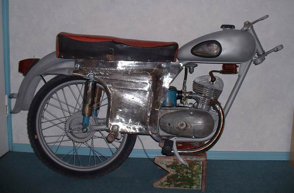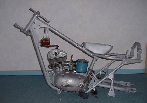 Дуплексная трубчатая рама спроектирована специально для этой машины. Двигатель - проверенный 125-кубовый агрегат, характеристика которого изменена применительно к условиям соревнований. Элементы ходовой части использованы из серийного дорожного мотоцикла.