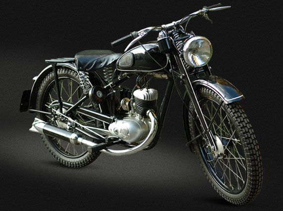 DKW RT125 в 1940 г. это была для своего времени передовая конструкция, к тому же очень технологичная. Её создатели хотели видеть в ней мотоциклетный «Фольксваген», он представлял собой гармоничное сочетание таких технических решений, как двигатель в блоке с коробкой передач, двухканальная петлевая продувка цилиндра с небольшим по сегодняшним понятиям оребрением который отливался из чугуна и имел необработанные (литые) продувочные каналы, шестерни постоянного зацепления в коробке передач, переключение передач педалью.
