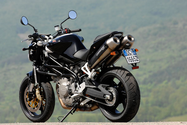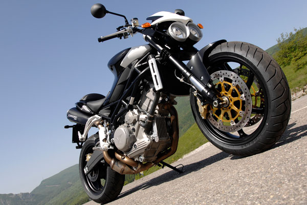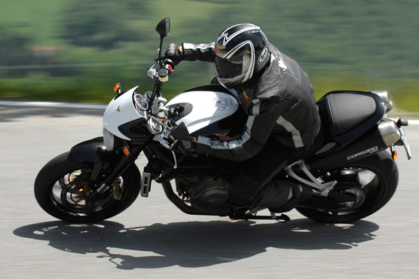 Не отстает от продвинутой «начинки» и внешность. Как и подобает самым модным стритфайтерам, Corsaro 1200 щеголяет перевернутой вилкой от Marzocchi, тормозными системами и литыми колесами Brembo, которые обуты в злобную резину Pirelli Diablo. При разработке модели конструкторы уделяли внимание каждой детали. Высокой мощности мотора под стать превосходные тормоза и мощное шасси. Спереди два 320-мм тормозных диска с радиальными суппортами, сзади – один 220 мм. Задний моноамортизатор Sachs с прогрессивной характеристикой. Передний «перевертыш» с диаметром труб - 50 мм!
