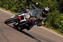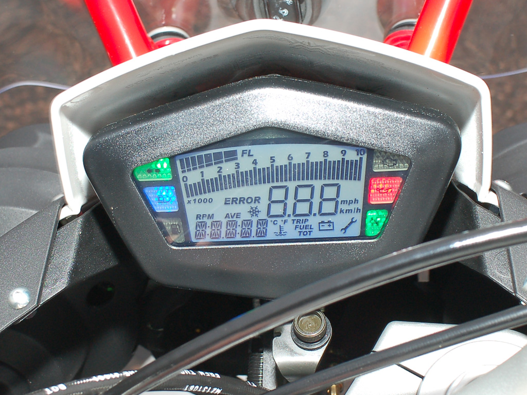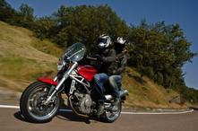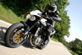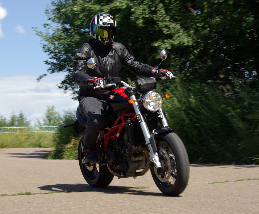 Модель отличается ажурной стальной рамой а-ля «птичья клетка», удобной эргономикой с низким седлом и «мускулистым» бензобаком. Комплектующие шасси и тормозной системы – от самых именитых производителей. Отменный показатель крутящего момента (102 Нм) делает модель удобной в качестве повседневной, для городского трафика и не только. На треке и загородной трассе 9 ½ подарит своему обладателю чувство драйва и власти над мощным байком.