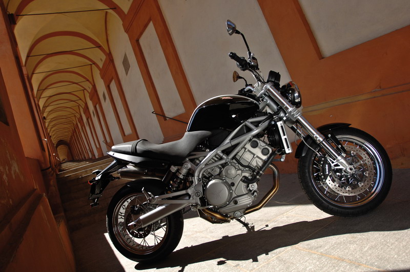 Дизайнеры компании активно используют свои старые наработки в классе мощных стритфайтеров, делая ставку на узнаваемый и неповторимый дизайн, а также выдающиеся технические характеристики. Судите сами, у 9 ½ 117-сильный 1187-кубовый V-твин Bialbero CorsaCorta, и с таким силовым агрегатом модель сразу занимает особую, выигрышную рыночную нишу – ничего подобного нет ни у одного конкурента!