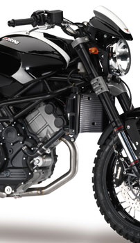 Отделка сидения из двухцветной кожи. Эта же тема продолжена раскраской бензобака. Круглую фару украшает симпатичный ветровик. Гоночная тема Scrambler 1200 подкреплена уникальным оформлением «рабочего места пилота» и высокотехнологичной «начинкой». Чего только стоят высокоэффективные тормозные системы Brembo и алюминиевый задний маятник?! Эта модель предназначена для тех, кто хочет выделиться из толпы и подчеркнуть свою индивидуальность.