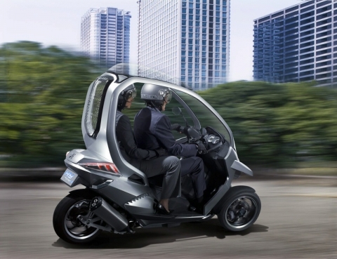 Фактически французы совместили сразу несколько популярных идей других производителей – гибридный движок, три колеса по образцу Piaggio MP3, силовой каркас.