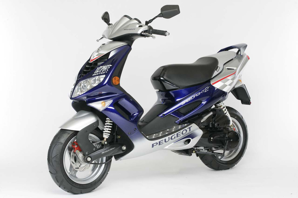 Двигатель 4-тактный с воздушным охлаждением, один из самых новых у Peugeot - с новой головкой цилиндра и более легким поршнем. Также совершенно новый воздушный фильтр, новая выхлопная система, новая подвеска и подогреваемый карбюратор для улучшения холодного пуска. На выбор предлагается пять цветов - черный, белый, оранжевый, синий и серебристый.