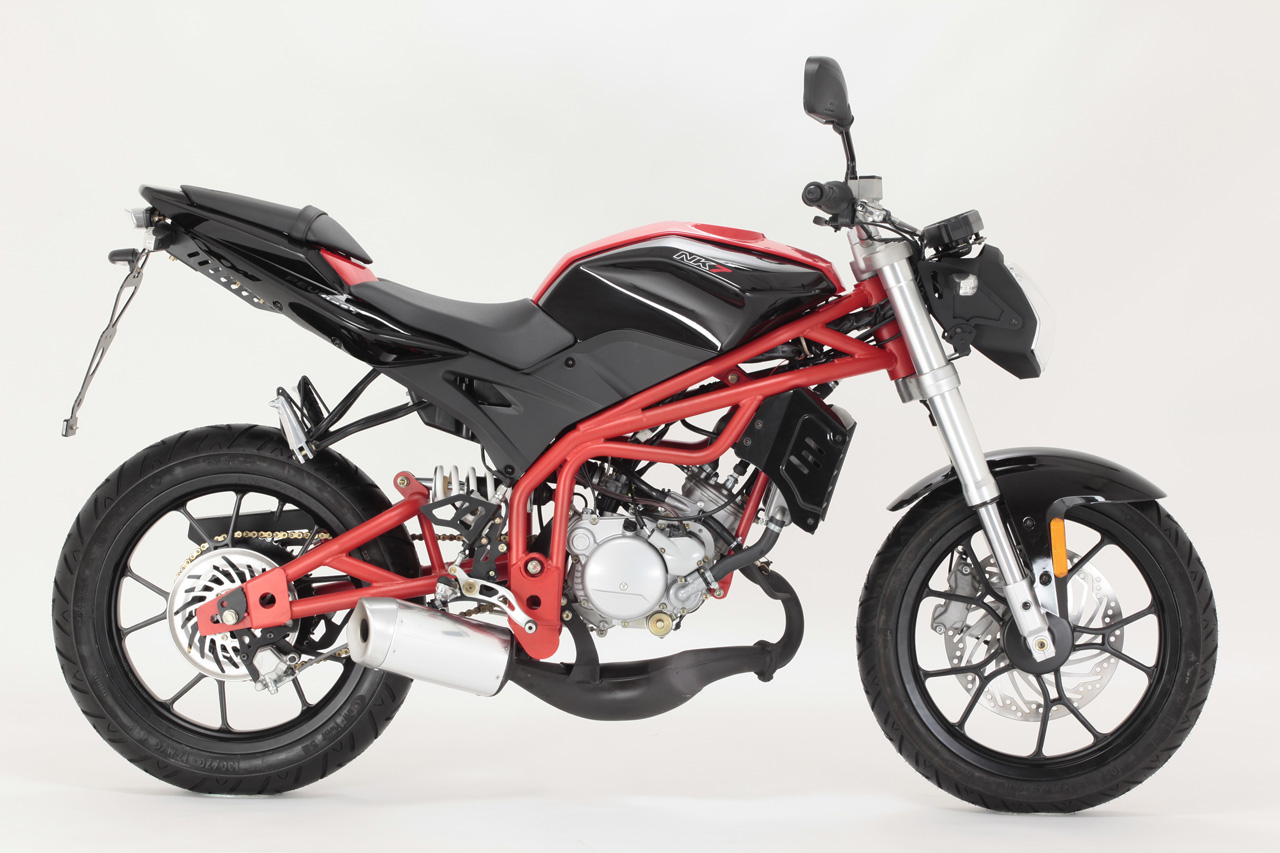 Машина построена на базе нового одноцилиндрового двухтактного мотора объемом 50сс. По внешнему виду – настоящий стритфайтер, отличающийся лишь маленьким объемом двигателя. Агрессивная раскраска, в которой преобладает черный цвет, и красная рама.