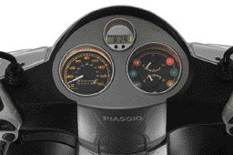 Рабочее место водителя на Piaggio X9 Evolution приятно удивляет. Прежде всего, удобством посадки. Широкое, в меру мягкое сиденье понравится любому, кто хоть раз сядет за руль этого скутера. Спинка регулируется по горизонтали в широком диапазоне, так что людям ростом вплоть до 190 см будет здесь удобно. Нет проблем и с местом для ног. Что касается пассажирского места, то попутчику также жаловаться не на что: его сиденье вполне комфортно, и за ручки держаться удобно. Разве что немного досаждают площадки-подножки, не очень дружелюбные, которые приходится заворачивать немного вовнутрь. Но вернемся к водительскому месту, вернее, органам управления скутером. Несмотря на то, что этот Х9 не “топовая” модель в линейке, приборная панель нафарширована, что называется, под завязку. Непосредственно на панели — четыре круглые шкалы, дающие информацию о скорости (в км/ч и милях), оборотах двигателя, температуре масла и остатке топлива в баке. Кроме этого, на руле установлен набор контрольных ламп и жидкокристаллический дисплей, который дает еще массу полезной информации. Нужно знать температуру забортного воздуха и суточный пробег? Не вопрос! Интересует пробег на остатке топлива и мировое время? И это возможно. Финальным аккордом стало наличие иммобилайзера в базовой комплектации. Честно говоря, такого количества наворотов на скутере среднего класса мне видеть еще не приходилось...