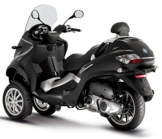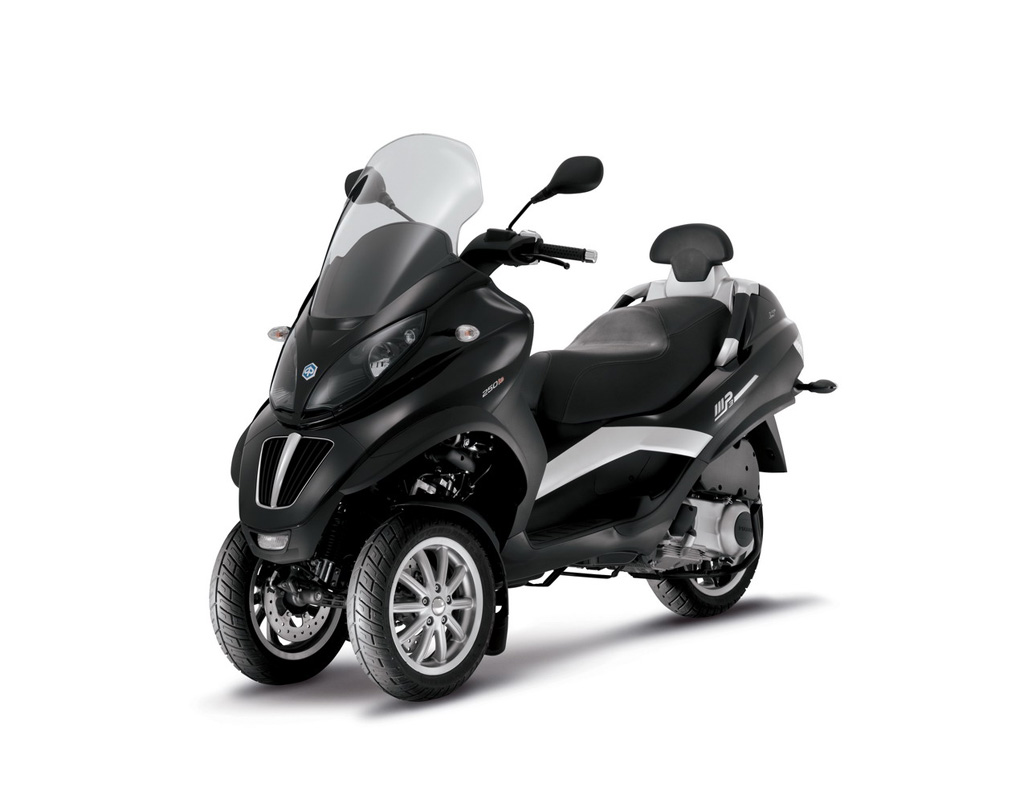 Piaggio MP3 – полностью инновационный скутер о трех колесах, два из которых – спереди. Он появился в 2006 году и достаточно быстро завоевал популярность. Передняя подвеска с двумя независимыми колесами - намного более устойчивая, чем на любом другом скутере. MP3 стабильно ведет себя на дороге даже тогда, когда другие, более совершенные транспортные средства, уже не могут этого предложить. Слова о полном контроле над дорогой для этой трехколесной конструкции можно проверить на мокром и скользком покрытии или в других более жестких условиях по сравнению с двухколесной техникой. У Piaggio MP3 меньше тормозной путь, в сравнении с двухколесными аппаратами, в среднем на 20% - благодаря тормозам с тремя дисками.