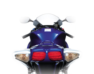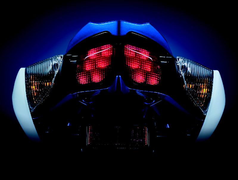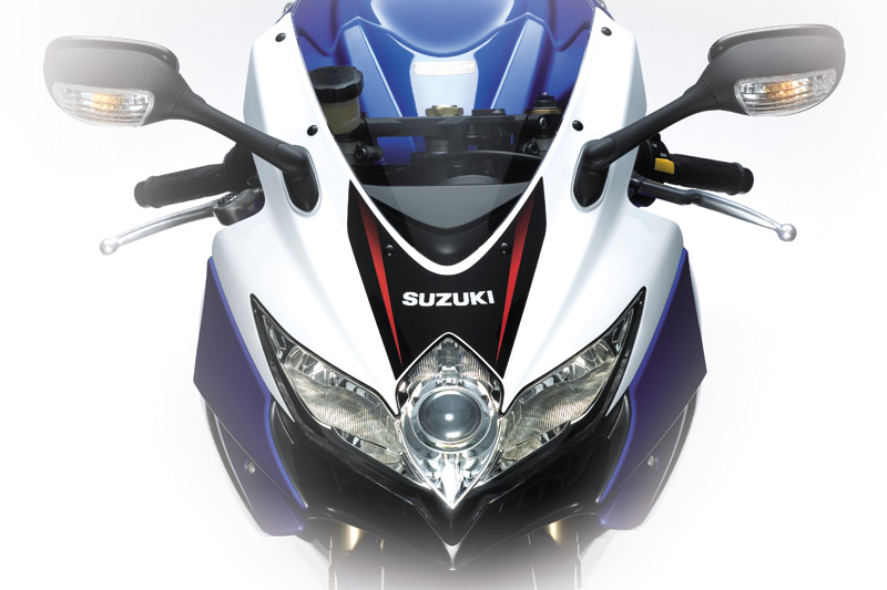 Особая агрессивная внешность Suzuki GSX-R1000 – это результат слияния в одном образе аэродинамики и высокого спортивного стиля. Благодаря особым обводам корпуса на ходу снижается лобовое сопротивление и турбулентность. Многорефлекторная фара с вертикальным расположением галогенных ламп дальнего и ближнего света и указатели поворота с каждой стороны являются одними из самых запоминающихся элементов экстерьера мотоцикла. Передний и задние указатели поворота оснащены прозрачными рассеивателями и лампами янтарного цвета. А в модификации для Европы рассеиватели имеют голубоватый оттенок, что еще больше усиливает спортивность образа.