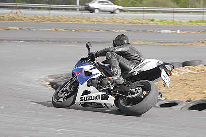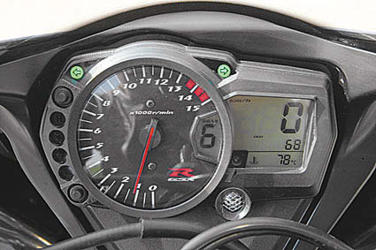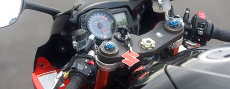 Здесь меня поразили два фактора. По той непринуждённости, с какой Suzuki перекладывается в медленных поворотах, и по степени отзывчивости на любые телодвижения пилота создаётся полное ощущение, что управляешь «шестисоткой»! Главное, чего не стоит делать, это забываться и относиться к правой ручке с должным уважением. При этом новое расположение пилота однозначно удобнее для «свешивания», что в свою очередь меньше утомляет, а значит, работает на увеличение скорости прохождения трассы. Общая же направленность мотоцикла на трек проявляется не только в посадке пилота, но и в настройках подвески, за всю ездовую сессию ни разу не потребовавших какой-либо корректировки. Обратная сторона медали – езда по обычным дорогам, где частенько ходов амортизаторов не хватает, для того чтобы справиться с колдобинами. Однако возможности регулировок очень широки и если предполагается в основном дорожное использование, то вполне можно изменить их в сторону комфорта. Правда, как мне кажется, для этого существуют куда более подходящие мотоциклы…