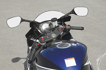 Впрочем, чтобы жизнь уж совсем не казалась малиной, лёгкая вибрация на них всё же присутствует, хотя до смазывания «картинки» дело не доходит. Высота переднего обтекателя для меня по-прежнему недостаточна, с другой стороны, в тюнинговых конторах тоже хотят кушать, причём, что характерно, отнюдь не чёрный хлеб. В целом посадка стала значительно более «плотной» и агрессивной, с большим акцентом нагрузки на руки пилота и смещением его к переднему колесу. Учитывая серьёзно возросшие динамические возможности мотоцикла, это, безусловно, следует считать благом. Пускай даже путём незначительной потери комфорта, который на удивление остался на вполне приемлемом уровне. Вообще в современной линейке спортбайков именно Suzuki свойственно при априори жёсткой фокусировке именно на спорт оставаться вполне дружественно настроенной по условиям существования не только к пилоту, но даже и к пассажиру. Естественно, речь здесь идёт об относительном комфорте – применительно к таким мотоциклам это понятие вообще очень условно. У меня же в момент трогания сложилось полное впечатление, что это какая-то «шестисотка», да и то серьёзно замученная диетологами.