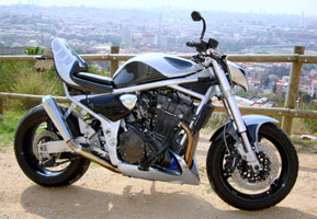 построили в Барселоне. Вилка от Suzuki GSX-R750 1993 года выпуска, а задний