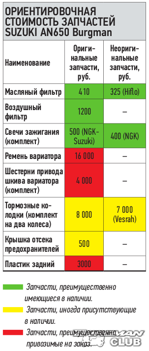 БИЛЕТ В БИЗНЕС-КЛАСС. Цены на бэушные «бурги» и «скаи» колеблются в широком диапазоне. Все зависит от пробега и общего состояния машины, а также от тюнинга, ведь иногда стоимость «звука» на скутере вплотную приближается к цене самого аппарата. Правда, экземпляров, не тронутых рукой тюнингера, рынок тоже предлагает в избытке, так что выбор есть всегда. Экземпляры первых годов выпуска с приличным пробегом предлагают от 200 тыс. руб., а иногда и ниже, но, выбирая аппарат из нижнего ценового диапазона, стоит учитывать, что возможная переборка мотора и вариатора могут здорово подточить даже довольно прочный бюджет.