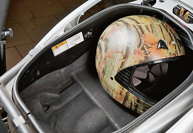 Багажное отделение достаточно вместительное у обоих макси-скутеров, хотя Сузуковский незначительно больше. Местонахождение аккумулятора в Хонде и доступ к отсекам габаритных ламп несомненно порадовали.