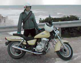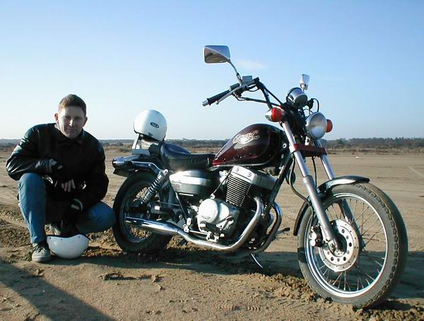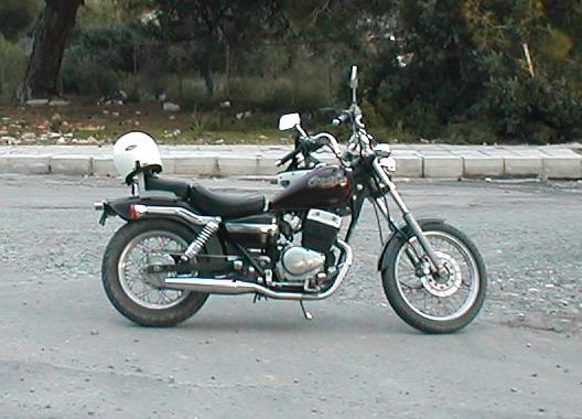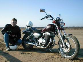 Итак, первой попалась Хонда. История модели 250сс Honda Rebel ведется с 1985 года, мне же достался мотоцикл 1988-го модельного года, с двумя карбюраторами, до меня этот агрегат уже немало поездил: 57тыс.км на одометре, общее состояние - на четверочку. Компактные габариты, малый вес и низкий центр тяжести делают мотоцикл очень простым в управлении. Рядный 2-х цилиндровый мотор воздушного охлаждения с раздельным выхлопом имеет уверенную и ровную тягу с самых низких оборотов, на 1-2 передачах (из пяти) можно ездить потихоньку даже на холостых - для езды по городу очень удобно, а звук... звук, доносящийся из выхлопных труб, описывать не буду - поставьте композицию "Пробил час" в исполнении "Арии", и дождитесь :) Подвески работают очень мягко, но ни разу не отработали до отбоя даже с пассажиркой на заднем сиденье - к тому же, что задние амортизаторы имеют 5 фиксированных положений настройки жесткости! А вот коротенькое крыло над передним колесом подкачало: стоит проехать лужу на скорости 60-65км/ч, и гамма ощущений класса "мордой в грязь" гарантирова - надо останавливаться и умываться/протирать очки :(( При езде по пыльной дороге песчинки летят летят в глаза, движение без герметичной защиты граз практически невозможно. Бензобак маленький: всего 10л, из них почти половина - резерв! К тому же возраст и не идеальное техническое состояние "нашего" мотоцикла значительно увеличили расход топлива, заставляя заезжать на заправку практически каждые 100км. Через неделю пришла очередь Suzuki. Маленький Marauder производится с 1998 года, а тестируемый экземпляр был и вовсе 2000-го года выпуска, с пробегом 7.5тыс миль (неужто и вправду американец?). Желтенький "цыплёнок" на вид значительно крупнее темнокожей Хонды, в основном за счет массивных крыльев и широкого переднего колеса, но с водительского места разница уже не ощутима - такой же лёгкий и послушный маленький чоппер. Мотор Мародёра - одноцилиндровый воздушник 250сс, на малых оборотах не даёт никакой тяги, однако с повышением оборотов становится всё веселее и веселее, и, раскрутившись, даёт отнюдь не меньшую мощность чем у 2-х цилиндровой Хонды. Подвески, как спереди, так и сзади, работают отлично, хоть и значительно жесче чем на хондюке - но это проблема пассажира (о чем она и намекала, и не раз ;) - однако мотоцикл с легкостью форсирует выбоины и его совсем не "колбасит" на разметке; жесткость пружин не подстраивается. Большое переднее крыло не позволяет всякой гадости лететь от колес в головы довольных наездников, хотя при езде по лужам мокнут ноги ниже колен, а в проливной дождь "фаберже" водителя быстро оказывается в луже стекающей с куртки воды (спасибо чопперной посадке ногами вперед и глубокому сидению) - это уже скорее недостатки экипировки, техника не виновата! Бензобак (хоть и желтый ;) оказался объёмным не только на вид, но и фактически: около 12л бензина плюс резерв (кстати, краник не имеет позиции "закрыт") при среднем расходе всего 3.5л/100км (с пассажиром!) позволяют кататься целый день, забыв про дозаправки :)