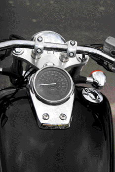 передней фарой, бензобаком, седлом и заканчивая задним крылом. Переднее крыло, выполненное в четкой стилистике, подчеркивает чистый вид передней части, а усеченное заднее крыло улучшает внешний вид задней части с обтекаемыми линиями. Длинный, широкий бензобак объемом 4,1 галлона (15,5 литра) мягко согласован с седлом; красивая топливозаправочная горловина укомплектована индикаторными лампами сигналов выполнения поворота, дальнего и ближнего света. Установленный на руле спидометр выполнен в чистой стилистике и расположен так, что его хорошо видит водитель.