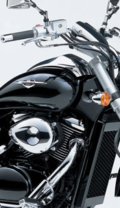 автомагистрали. Мотоцикл укомплектован валом, который требует проведения минимального ТО, чисто работает и хорошо реагирует на крутящий момент. Выхлопная система, выполненная в кастомизированной стилистике, обладает глубоким, сильным звуком; система рассчитана на повышение мощности при низких оборотах двигателя. Импульсная система подачи воздуха нагнетает воздух в выпускные каналы для дожига остатков углеводородов и снижения загрязненности выхлопа; модель для Калифорнии комплектуется катализатором, который еще больше снижает уровень загрязненности. Особенности шасси