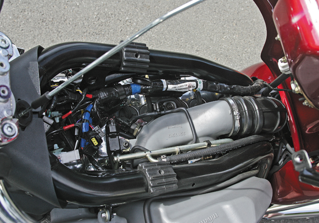 левой стороне топливного бака), подающие воздух на три 52-милимитровые