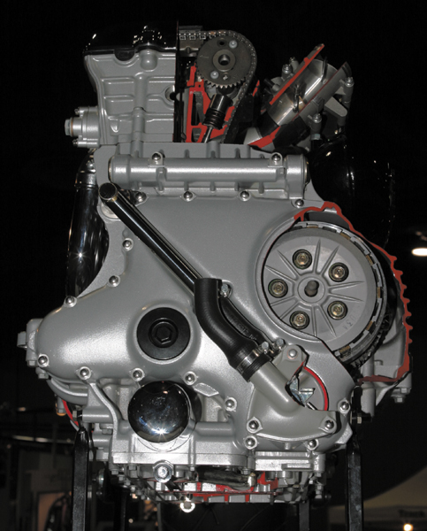 трехцилиндровый поперечный двигатель Triumph Daytona выдает почти такую же