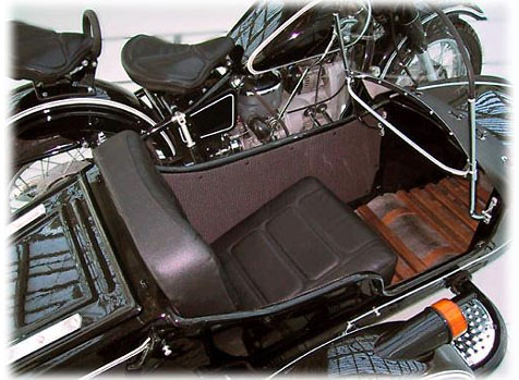 «Кожаные» детали комбинированные: верхние (лицевые) части обивки седел выполнены из натуральной кожи, боковые детали и тент на коляске - из искусственной. Отделка кузова коляски мотоцикла Урал включает обивку подушки и спинки седла натуральной кожей и внутренние велюровые боковые панели (почти как в персональных довоенных автомобилях).