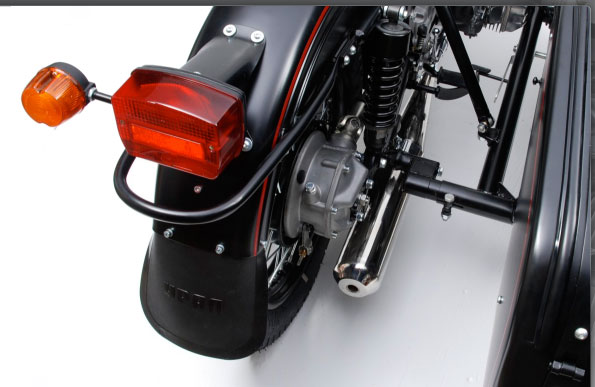 Ретро-стиль создают каплевидная форма бензобака, инструментальный ящик под седлом, багажник на заднем крыле, круглый задний фонарь, габаритный фонарь в виде трубы на крыле коляски (практически полностью воссоздано любимое раритетчиками колясочное крыло), форма руля (на мотоцикл устанавливается низкий «эмовский»), яйцевидная «глубокая» фара и, конечно, двойная белая цировка поверх безупречно лакированной черной краски. Кстати, для окраски используется ярославская эмаль МЛ-1110 классического черного цвета, которая блестит не хуже дорогой «фирмы».