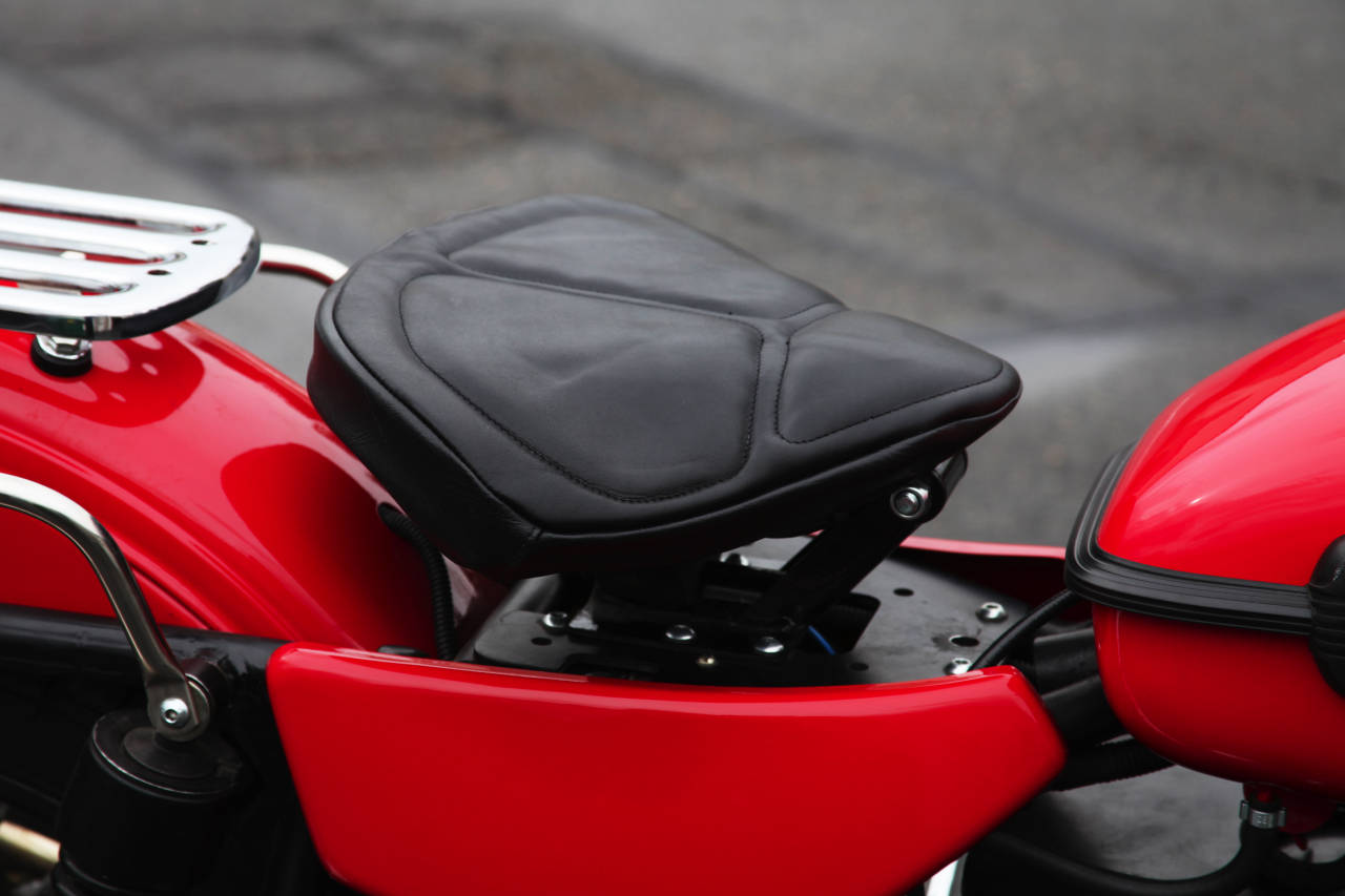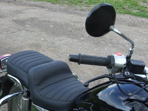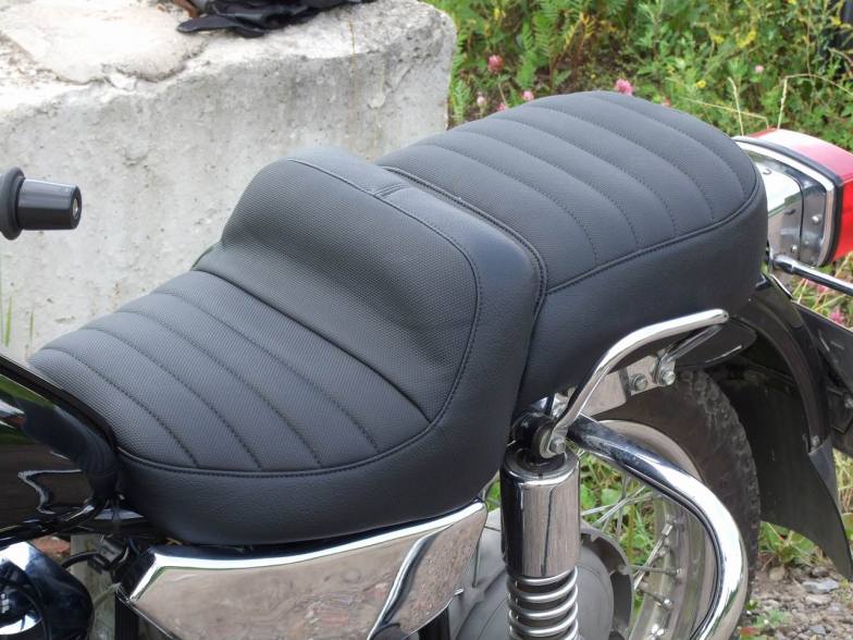 Седло перетянули специальным винилом, нескользким и непромокающим. Заодно плотнее набили. Теперь оно выглядит еще круче, и сидеть удобнее.