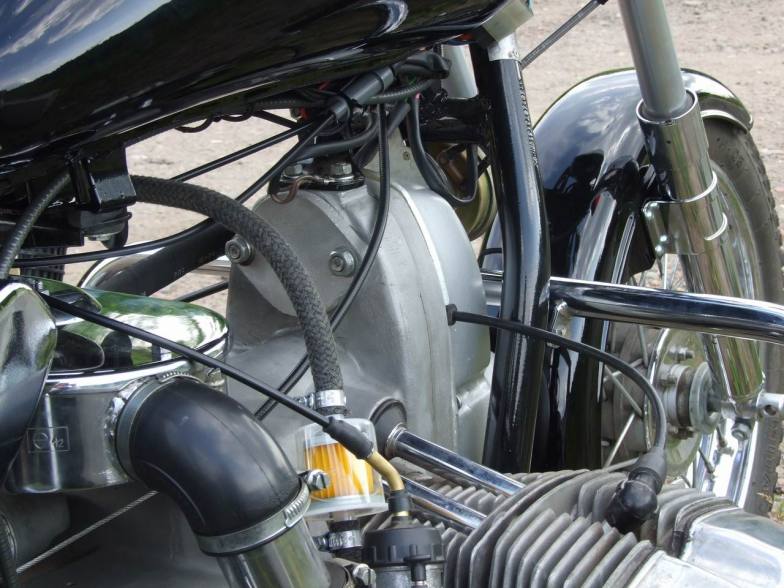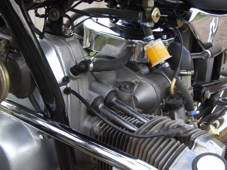 Карбюраторы Кейхин заменены на родные пекаровские К68Т. Вопреки устоявшемуся мнению, мотоцикл нисколько не потерял в динамике, а вовсе наоборот, едет очень весело. И никаких теперь проблем с синхронностью и прочих косяков Кейхинов. Вакуумный бензокран соответственно заменен на обычный.