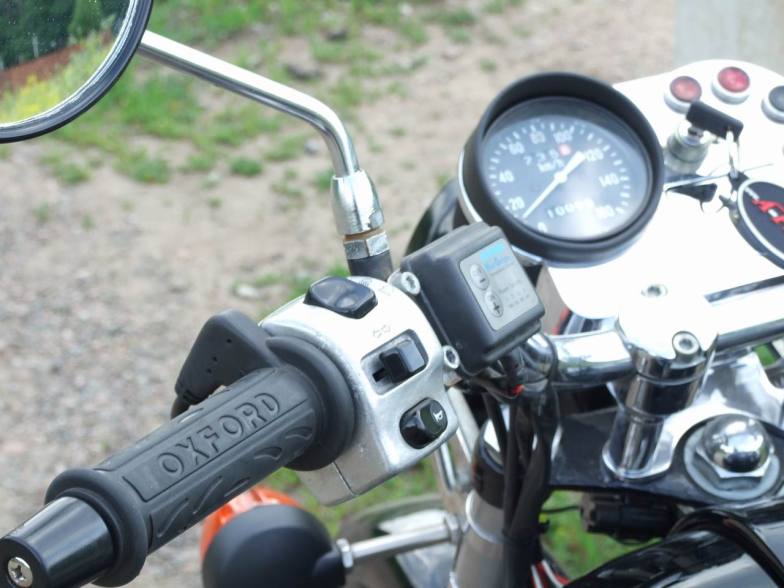 Добавилось множество полезных и приятных мелочей: ручки руля с подогревом и электронным регулятором – он сам выключается, стоит напряжению упасть ниже допустимого. На концах руля установлены грузы, самолично мною выточенные из здоровенных болтов – на М30, не иначе. Тяжелые. Вибрация на ручках уменьшилась заметно.