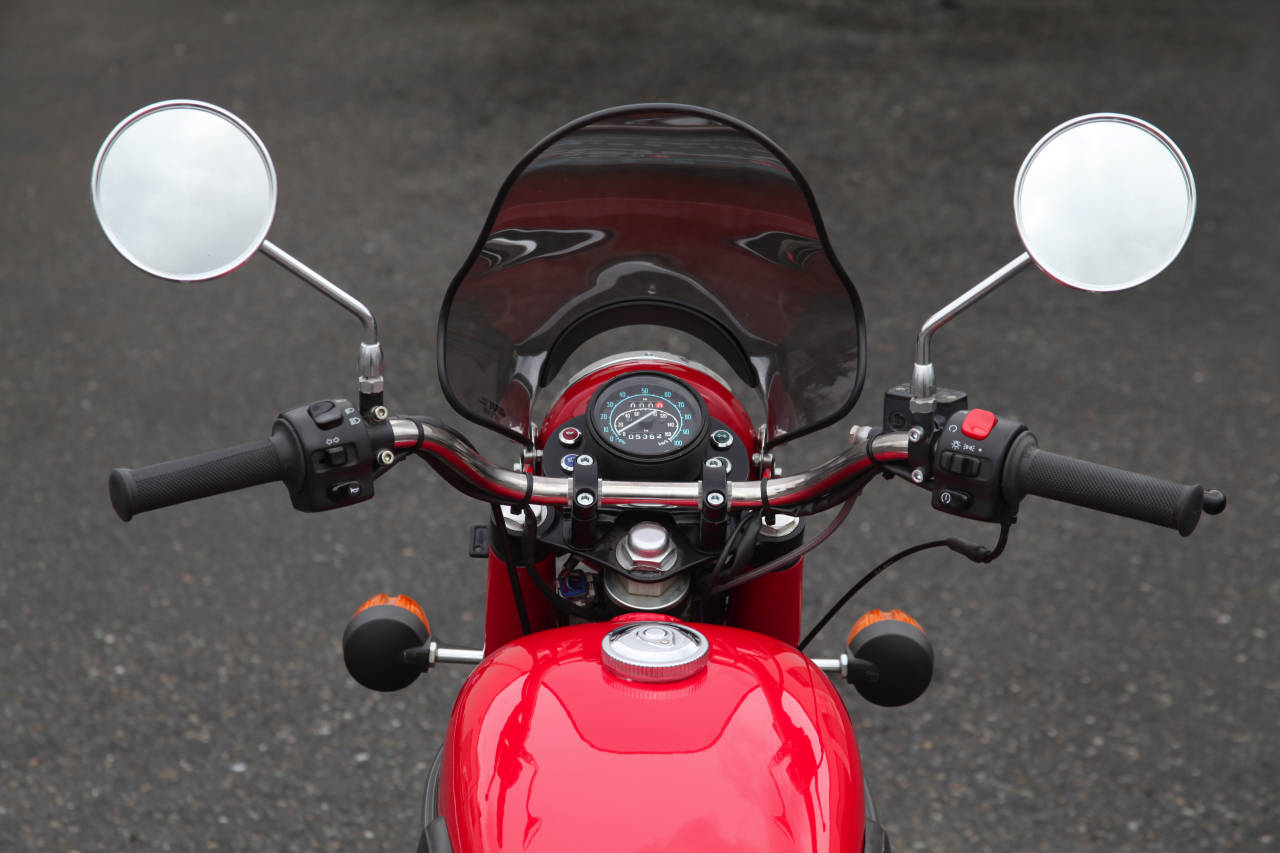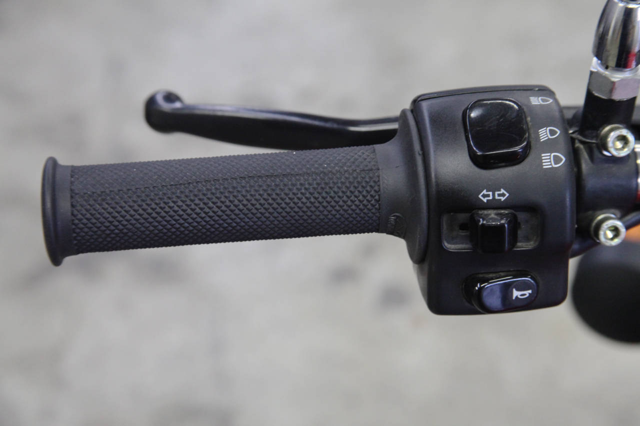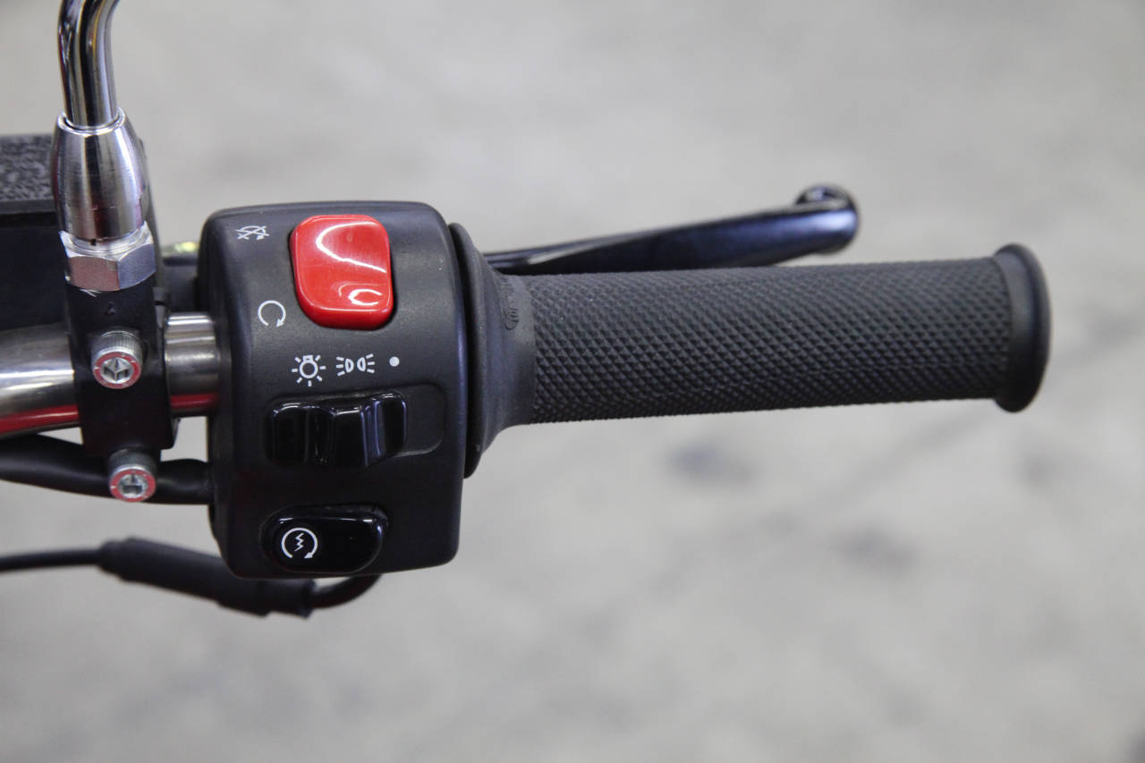 Под нож отправилась приборная панель, а фару заменили на другую, в которой разместилась вся электрика. Нужный руль нашелся в мастерской, на него установили стоковые пульты управления (замок зажигания переехал под сиденье), а все провода и кабели проложили внутри. Венчают руль светодиодные поворотники Oberon, работающие в обе стороны – как вперед, так и назад. Таким образом, отпала необходимость в установке задних поворотников, на новом алюминиевом крыле красуется лишь компактный светодиодный стоп-сигнал.