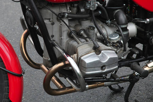 Горизонтальный двухцилиндровый двигатель объемом 750 см3 развивает мощность 40 л.с. при 5600 об/мин и вращающий момент 54 Нм при 4600 об/мин. Двигатель теперь располагается симметрично в раме в отличии от модели с коляской, где двигатель смещался немного вправо для централизации масс.