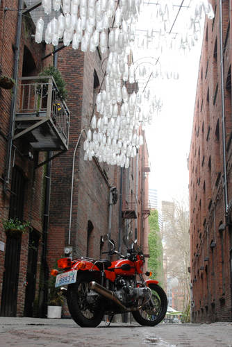 По случаю новой выпускной системы были установлены фильтры K&N. Интересное место Джеймс нашел для воздушных фильтров K&N, установив их в топливный бак, которые был немного уменьшен в объеме для прямых функций. Подобная система использовалась на BMW R75. Разумеется, жиклеры в карбюраторах подобрали с учетом всех изменений впускного и выпускного тракта.