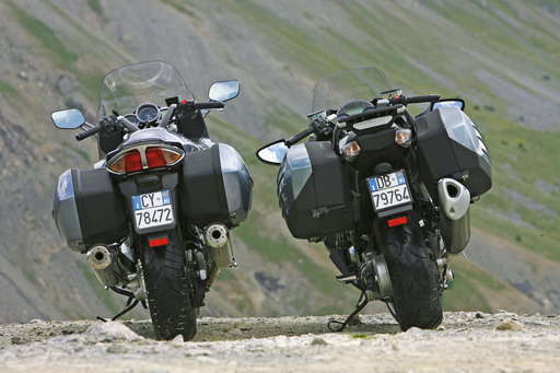 Чтобы проверить показатели двух мотоциклов «на деле», мы отправились в двухдневную поездку, маршрут которой включал в себя участки автомагистралей, дороги с быстрым движением и извилистые альпийские перевалы. Все это – с сумками, удобно расположившимися в боковых съемных кофрах, которыми располагают оба мотоцикла. Вместимость кофров почти одинакова, как и внутренняя их форма без выступов, что позволяет без проблем разместить в них багаж и шлем. На обоих мотоциклах система открытия с помощью двойного рычага и ключа проста и функциональна.